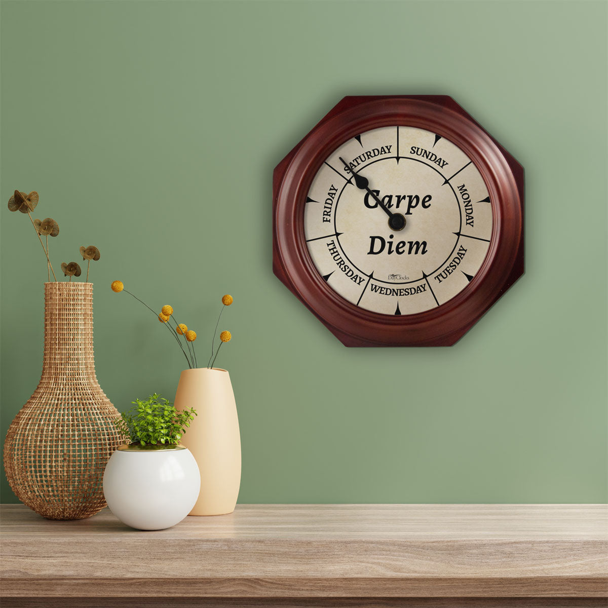 "Carpe Diem" DayClock with 10" Mahogany Wood Frame